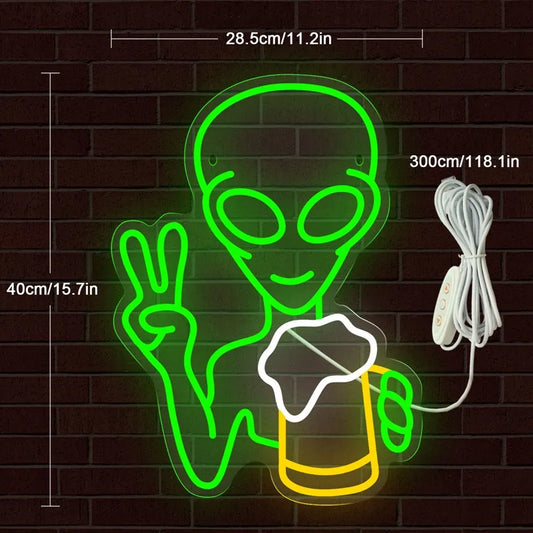Alien Drinking Beer Neon Sign (1 piece)