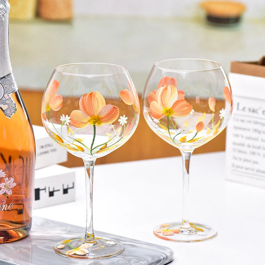 Hand-painted Wine Glass - Orange/Pink Floral (1 pce, 400ml)