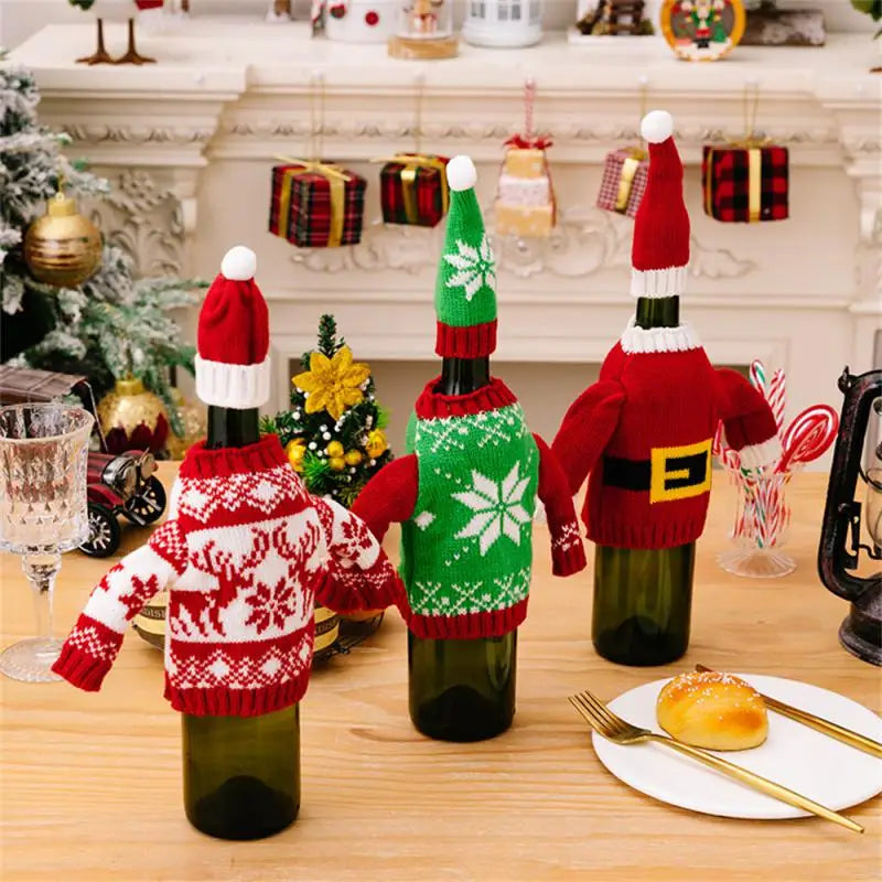 Jingle up your Christmas decorations with the Knitted Sweater Wine Bottle Set and Christmas Hat Clothes for your favorite Red Wine! Perfect for dressing up restaurant wine bottles with festive charm.